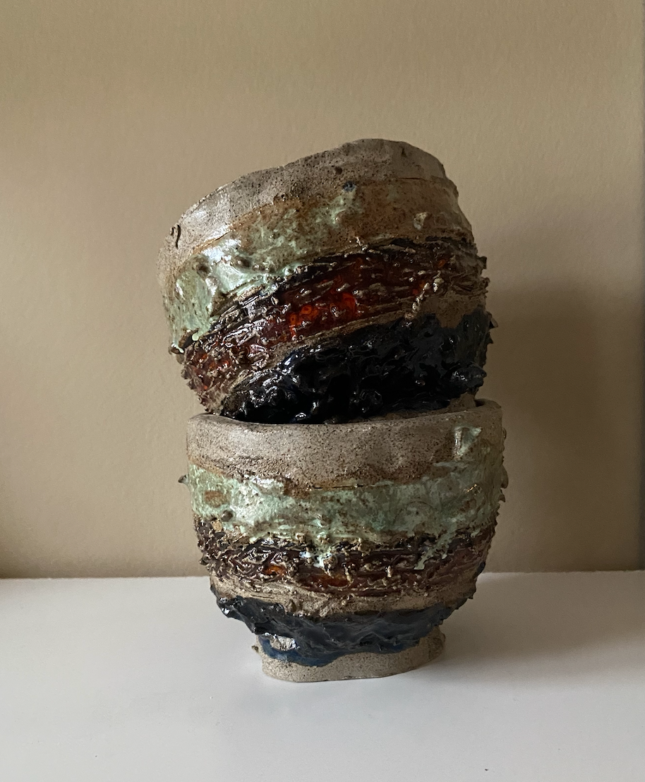 Jeg har bevidst valgt at bruge keramik som et sted, hvor perfektionismen får lov til at træde et skridt tilbage. Her handler processen lige så meget om at undersøge, lege og lære, som om det færdige resultat. Det er både sjovt og udfordrende at arbejde med et materiale, der reagerer med det samme, og som kræver nærvær, tålmodighed og accept af det uforudsigelige.