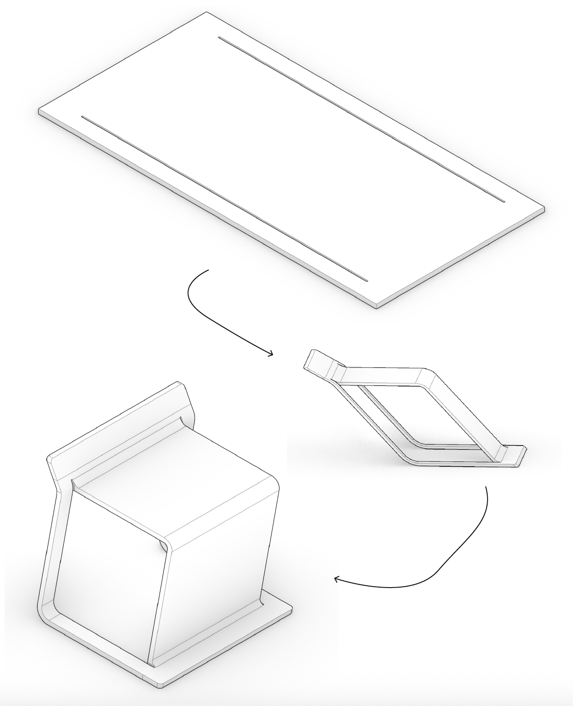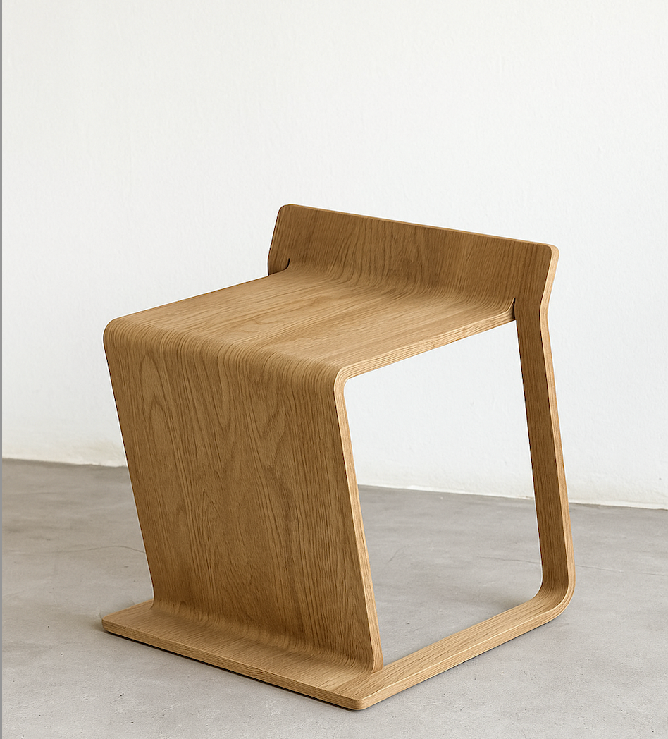 Udgangspunktet for Linea er ønsket om at skabe et alsidigt møbel uden at gøre det multifunktionelt. Et møbel, der er skåret helt ind til benet – både i udtryk, konstruktion og materialeforbrug. Skamlen tager udgangspunkt i ét stykke krydsfiner, som formspændes og bearbejdes, så konstruktion, styrke og stabelbarhed opstår gennem formen frem for tilføjede elementer. Resultatet er en enkel og robust konstruktion med minimalt spild.